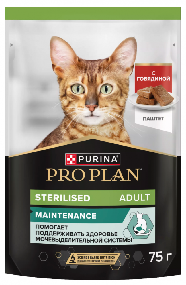 Консервы Про План ПП паучи Стерил Говядина: ПАШТЕТ 75 г для кошек