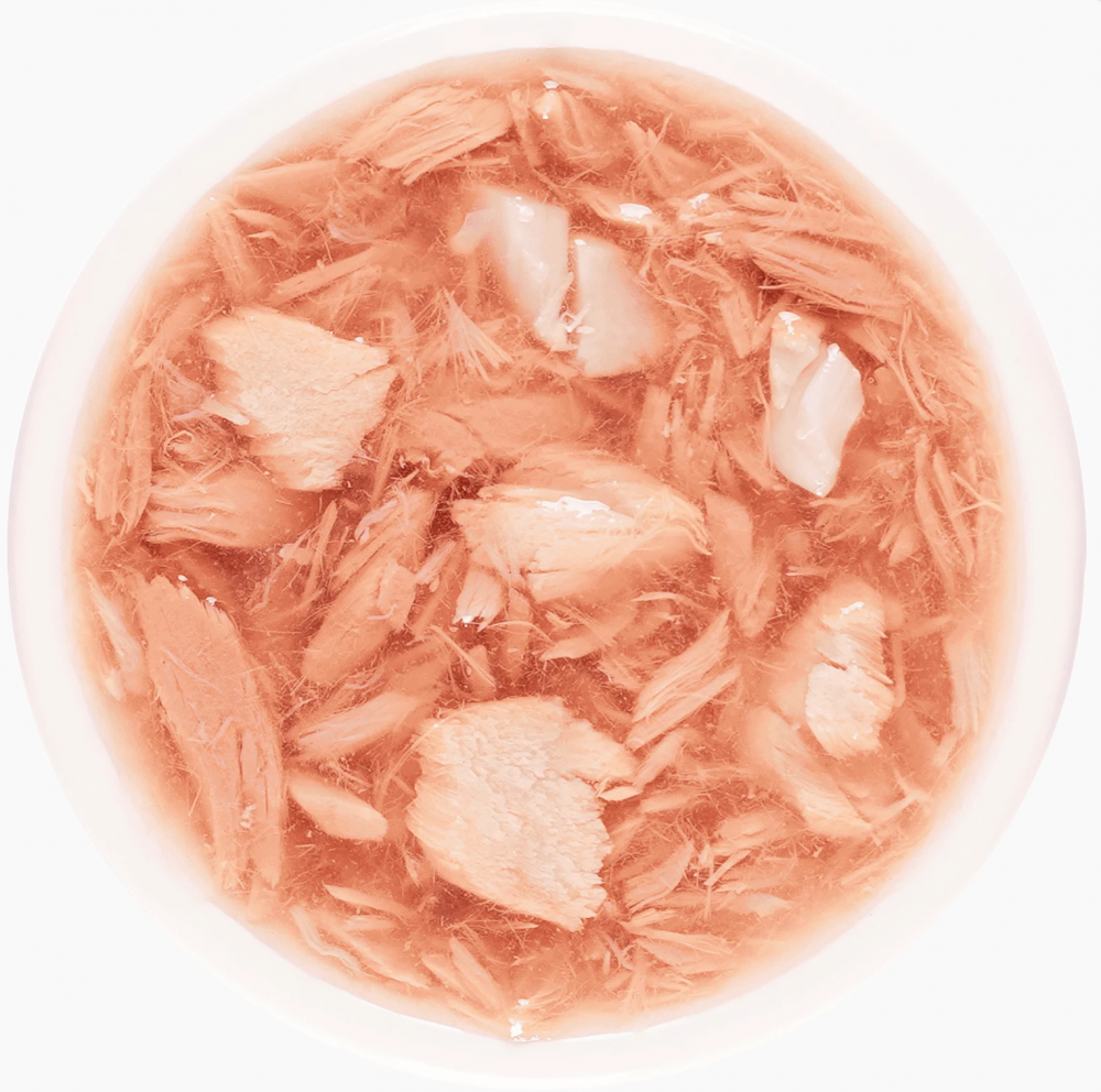 Состав:nбульон из тунца - 71,3%, тунец - 20%, лосось -4%, гребешок-4%, желирующая добавка, экстракт тунца, витамин Е. Из-за использования на производстве возможны остаточные следы: кролика,баранины,говядины, утки, курицы, индейки, рыбы, ракообразных, маллюсков, орехов, кунжута, молочных продуктов, сои, бобовых, злаков и их субпродуктов. Гарантируемые показатели (га 100гр): протеин - 10,5, жир - 0.2,клетчатка - 1, зола - 1,5, влажность - 89, 30,8ккал Норма кормления: вес кошки:1-3кг - 1пачка, 3-5кг - 2пачки