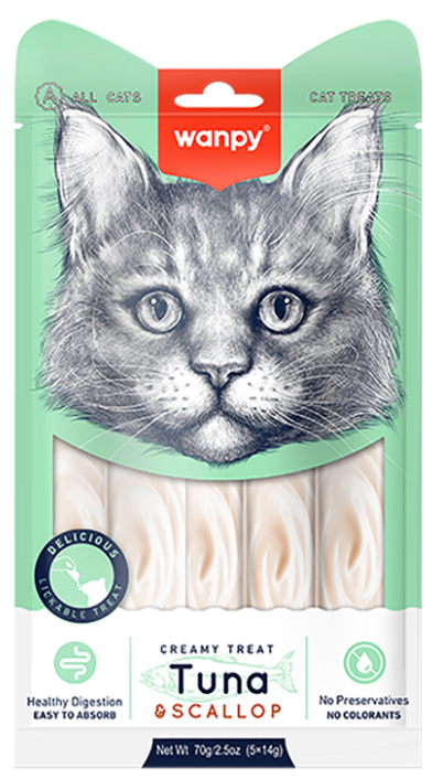Побалуйте свою кошку чистым удовольствием с Wanpy крем-лакомство — тунец и гребешок. Сделанные из 100% настоящего тунца и краба, эти лакомства без зерна — идеальный способ сблизиться с кошкой. Без искусственных красителей, ароматизаторов и консервантов они обеспечивают чистую, полезные вещества в каждой порции. Подробнее