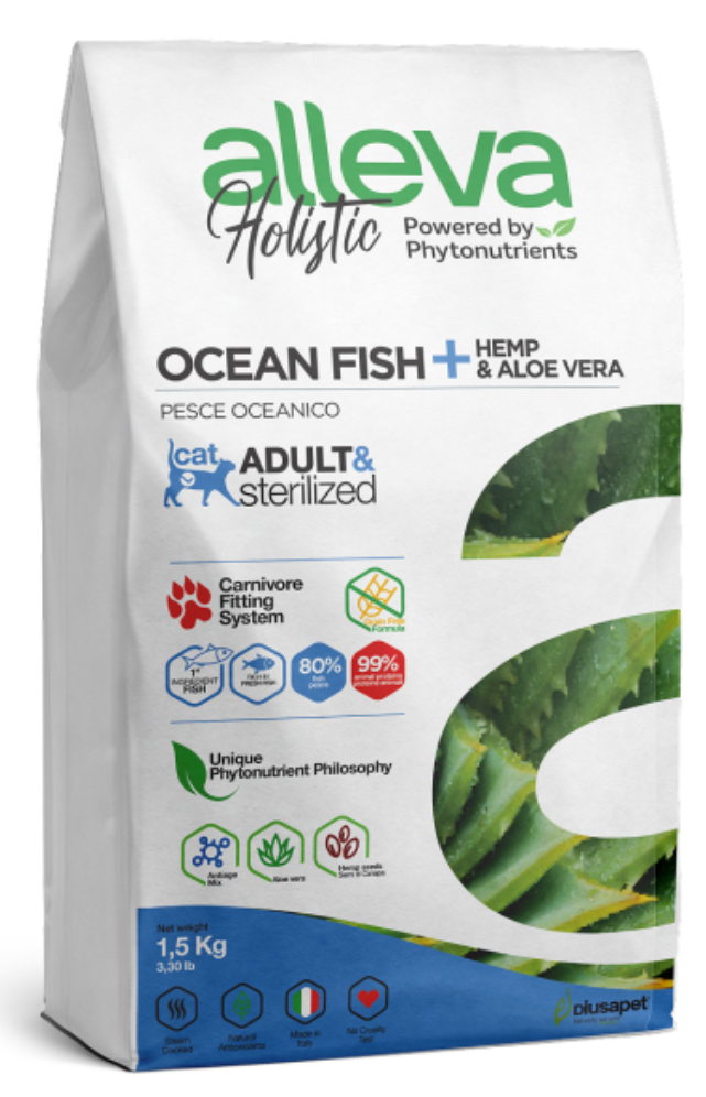Корм Аллева Холистик для взрослых кошек, с океанической рыбой, коноплей и алое вера