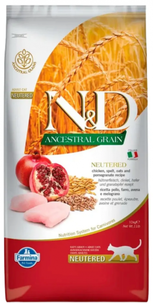 Корм FARMINA для стерилизованных кошек, курица с гранатом и спельтой, низкозерновой