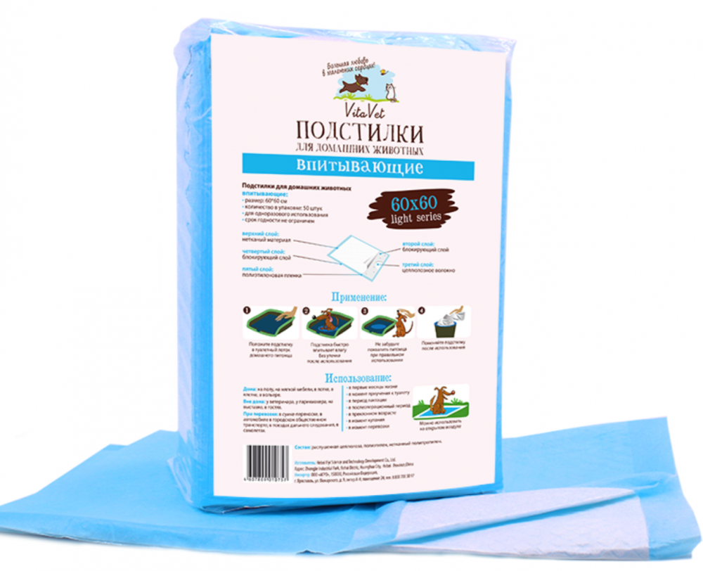 Незаменимые впитывающие одноразовые подстилки VitaVet CARE для ухода за домашними животными. Подстилки VitaVet CARE с многослойной структурой используются в период лактации, в раннем возрасте животного, для престарелых животных, в послеоперационный период, во время перевозки, на выставках, на прогулке, в момент приучения к туалету и т.д. Одноразовые впитывающие пелёнки VitaVet CARE также часто используют в качестве наполнителя для лотка для собак мелких пород или кошек. Владельцам птиц и грызунов также пригодятся подстилки: они послужат отличной альтернативой газетам и наполнителям, а клетку станет гораздо проще убирать. Подробнее