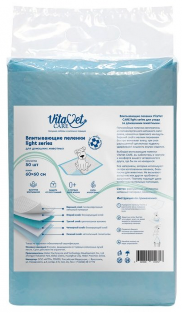 Пеленки VitaVet CARE light series впитывающие, 60х60 см, 50 шт