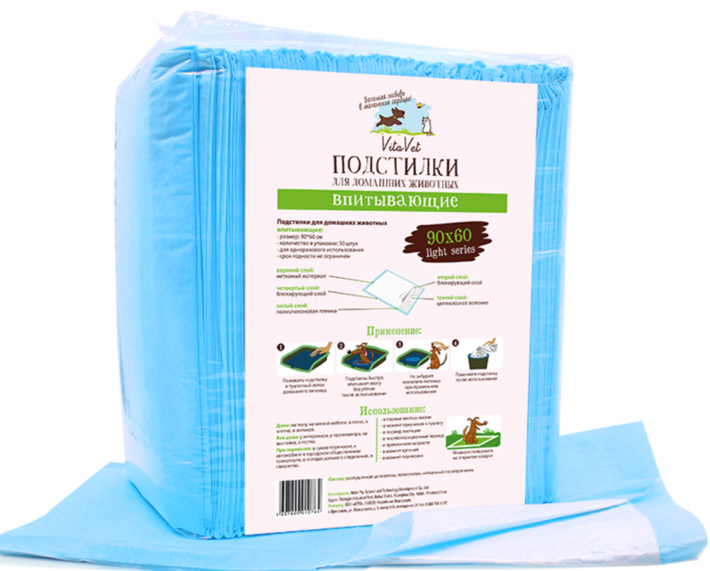 Незаменимые впитывающие одноразовые подстилки VitaVet CARE для ухода за домашними животными. Подстилки VitaVet CARE с многослойной структурой используются в период лактации, в раннем возрасте животного, для престарелых животных, в послеоперационный период, во время перевозки, на выставках, на прогулке, в момент приучения к туалету и т.д. Одноразовые впитывающие пелёнки VitaVet CARE также часто используют в качестве наполнителя для лотка для собак мелких пород или кошек. Владельцам птиц и грызунов также пригодятся подстилки: они послужат отличной альтернативой газетам и наполнителям, а клетку станет гораздо проще убирать. Подробнее