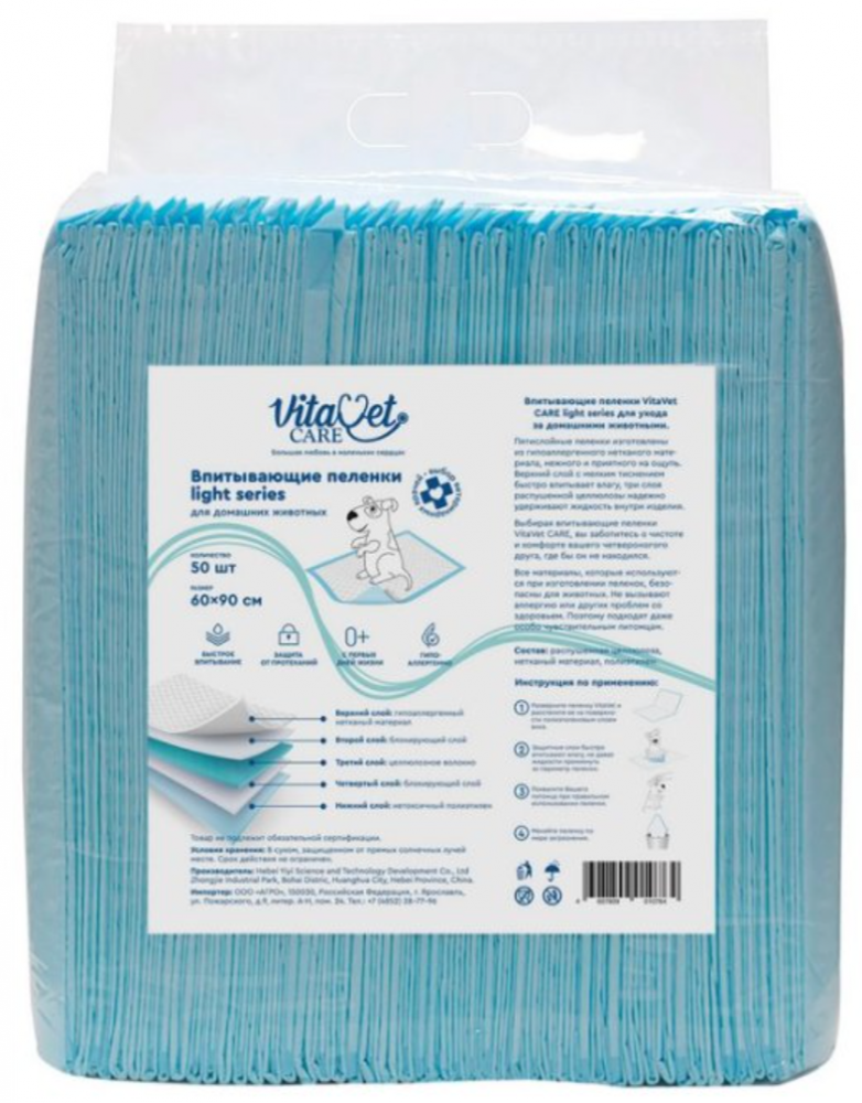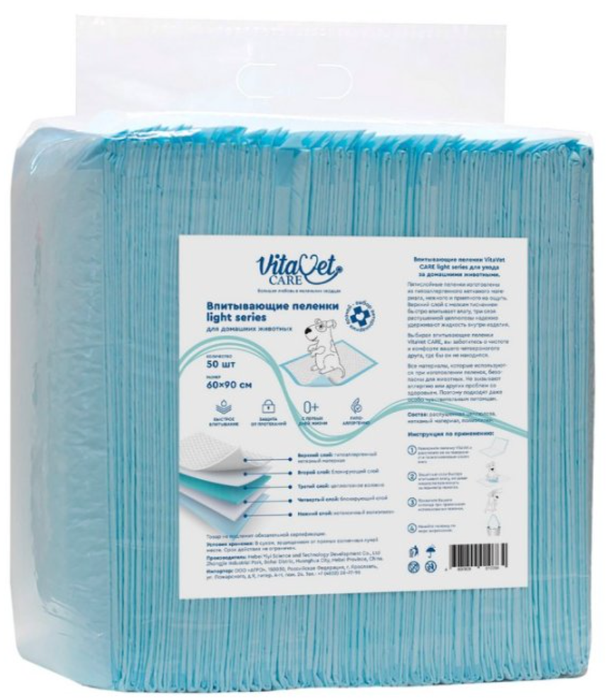 Пеленки VitaVet CARE light series впитывающие, 60х90 см, 50 шт