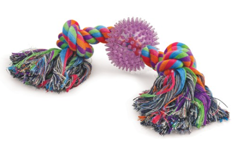 Собаки обожают играть с веревочными игрушками, так как их можно грызть, трепать и носить в зубах. Такие игрушки отлично массируют десны и очищают зубной налет во время игры. Веревки сплетены из нитей натурального хлопка, поэтому безопасны для здоровья Вашего питомца. Цвет: разноцветный. Вес: 140-150г. Длина веревки: 310мм. Размер мяча: d65мм. Подробнее