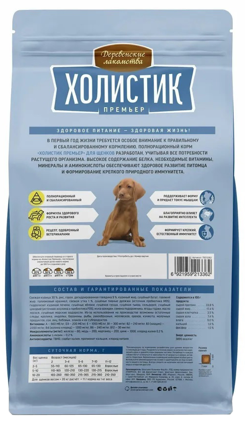 Корм Деревенские лакомства Холистик Премьер для ЩЕНКОВ, курица с рисом