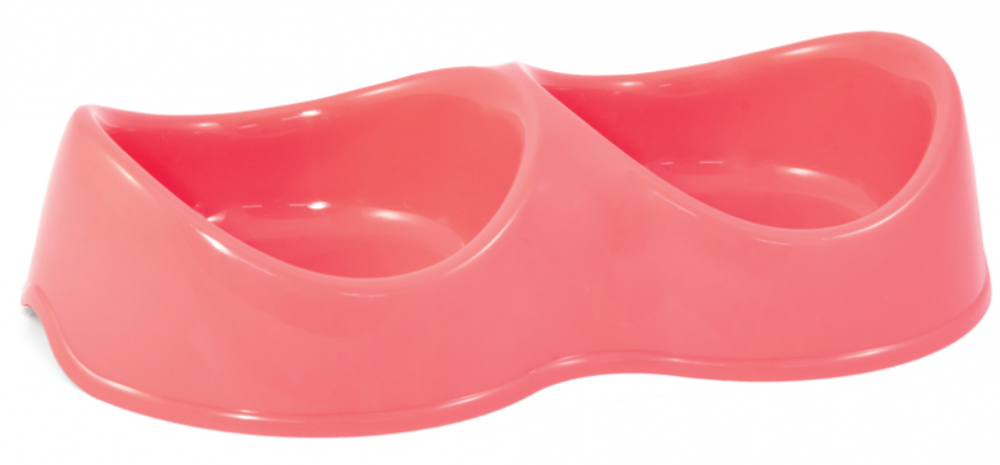 Миска для кошек и собак Triol пластиковая двойная "Бисквит", 2*0,2л. коралловая