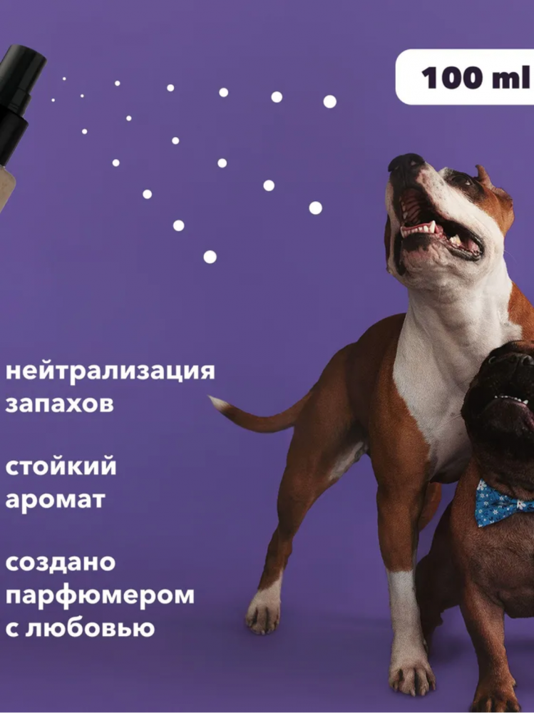 Стойкий и насыщенный аромат нейтрализует неприятные запахи на шерсти и коже.