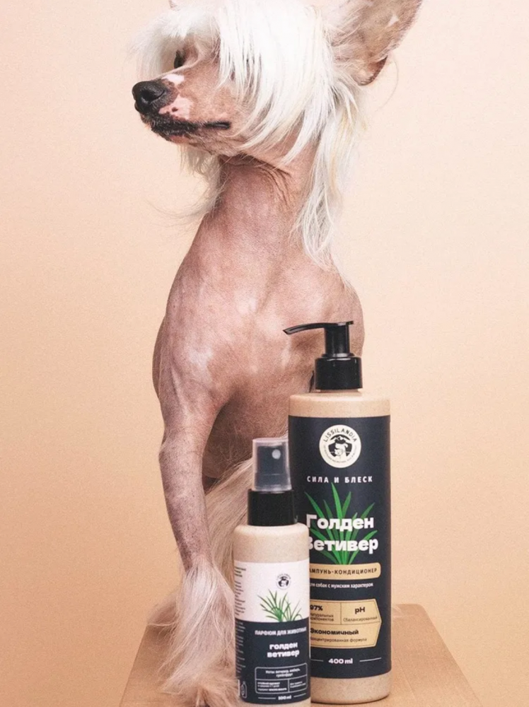 Парфюм для животных с притягательным мужским ароматом ветивера создан на основе безопасных компонентов для применения в груминг салонах и дома.