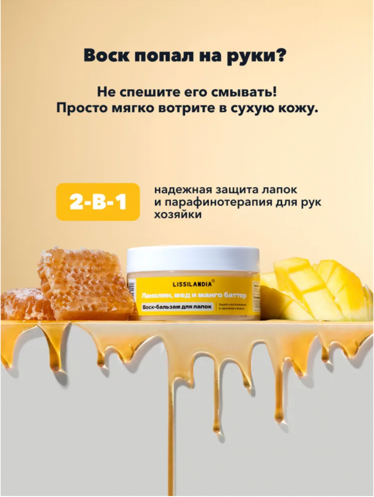 Воск-бальзам для лап Лиссиландия защита и восстановление подушечек лапок с ланолином, экстрактом мем