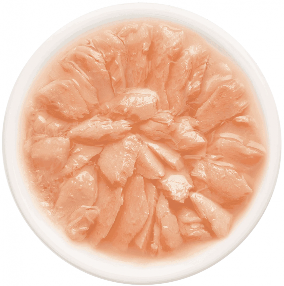 Состав: лосось 58 %, бульон из лосося 40 %, натуральная желирующая добавка.nПищевые добавки: пивные дрожжи (источник пребиотика МОС), пребиотик ФОС, рыбий жир (анчоус), витамин Е, таурин, минералы.nПищевая ценность, %: протеин — 8,5, жиры — 2,5, клетчатка — 1, зола — 1,5, влажность — 89; энергетическая ценность — 65 ккал.