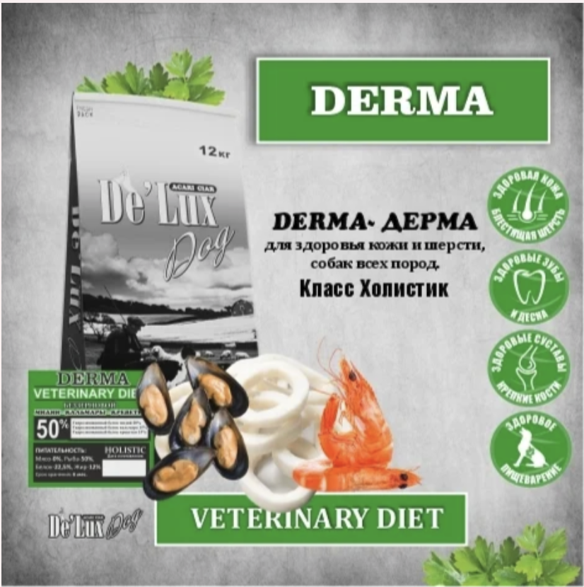 е`Люкс Дог. Сбалансированный сухой корм класса HOLISTIC (ХОЛИСТИК) Дерма (морепродукты)